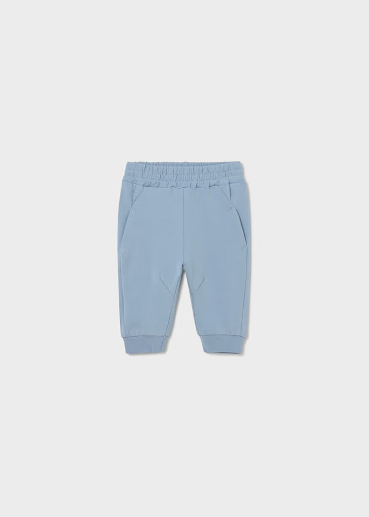 Mayoral newborn boy's three piece tracksuit, includes a striped zip up hoodie, matching track bottoms, and a white t-shirt with a cute star on the front of it.