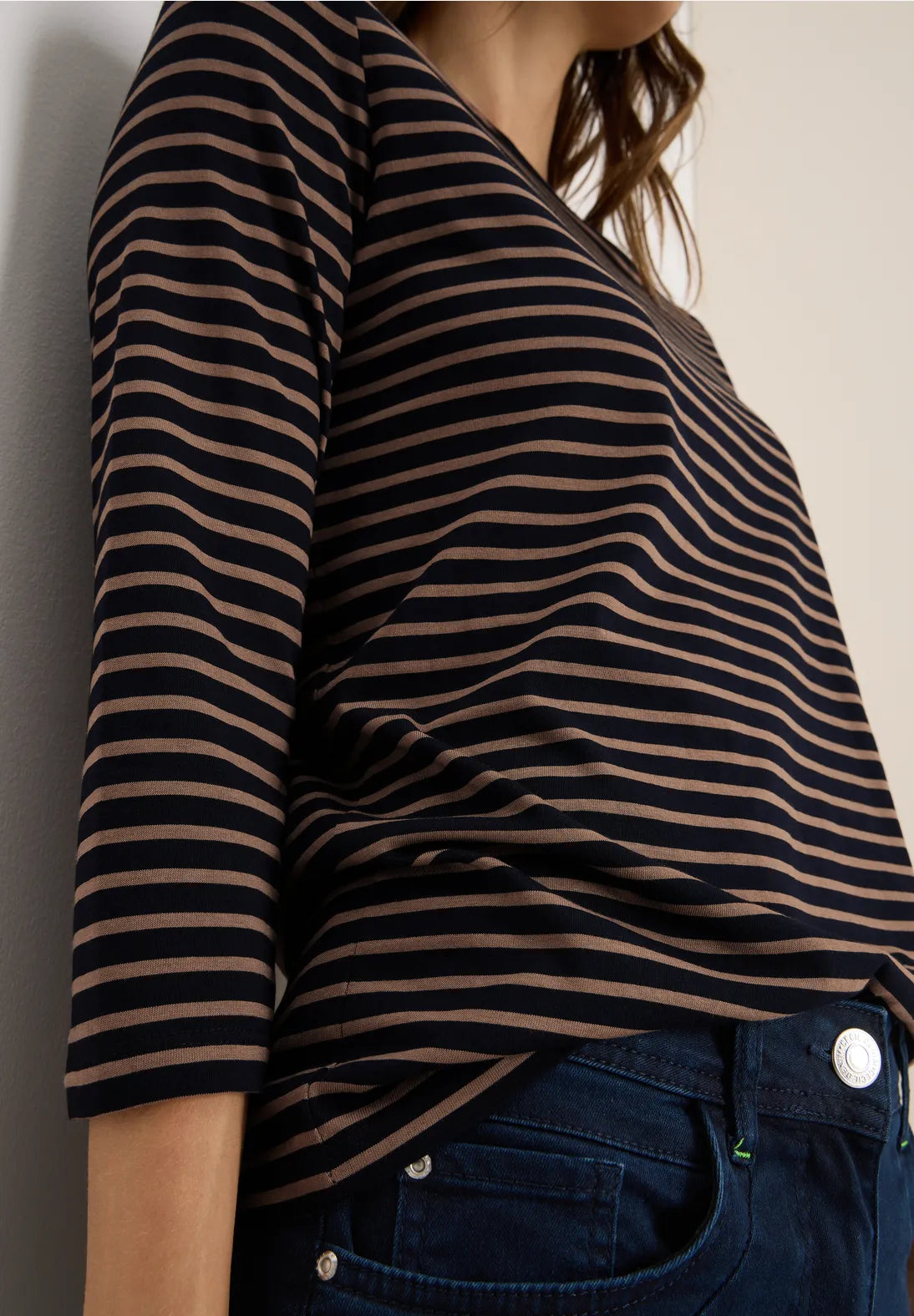 Cecil Basic Boatneck Top in Navy and Brown 324053