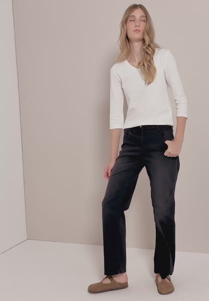 The basic shirt by CECIL for women is an uncomplicated companion with a feminine V-neck. The 3/4 sleeves make it ideal for the transition period. Pure cotton provides natural comfort in every outfit.