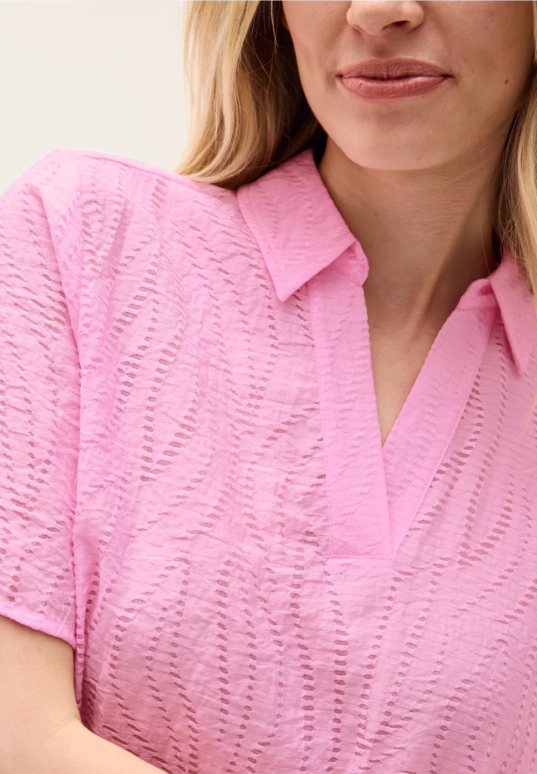 This blouse by CECIL for women convinces with shirt collar, short sleeves and a light structured pattern. The soft quality ensures pleasant wearing comfort. This makes the blouse shirt ideal for casual office or leisure looks.