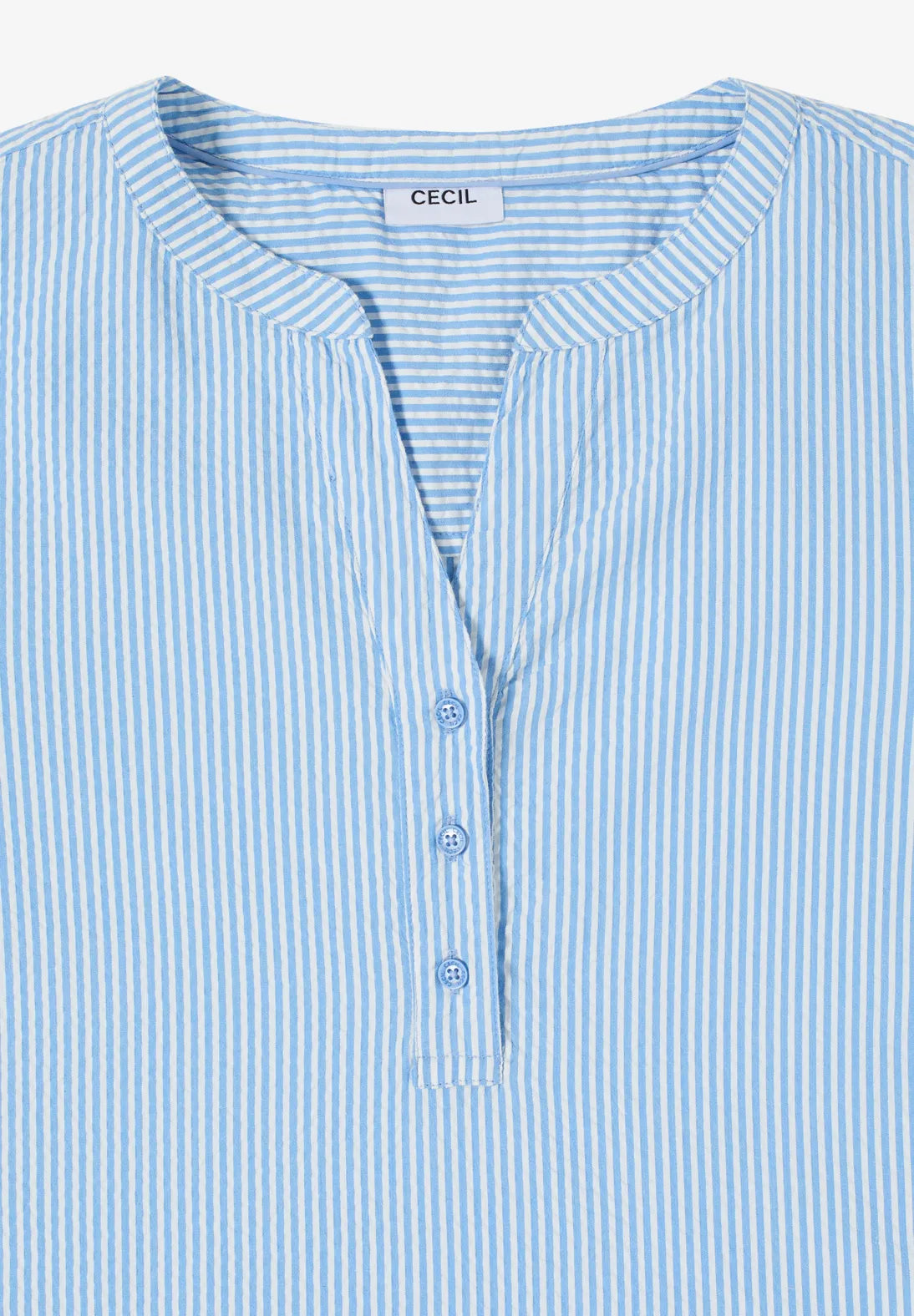 Lightweight and versatile: This Seersucker blouse by CECIL for women features fine stripes, decorative button placket and rounded hem with side slits. With its relaxed feel, the blouse is ideal for fresh casual looks.
