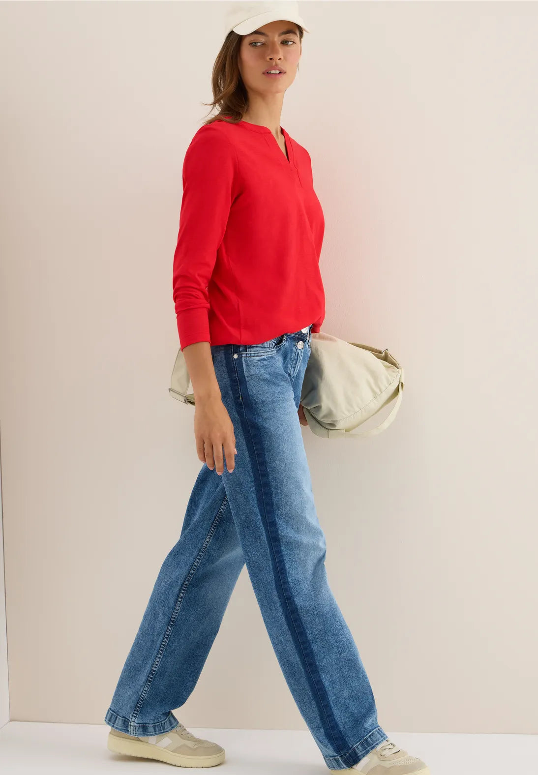 This women's tunic shirt from CECIL features a classic split neck, long sleeves, and an elastic hem for a casual fit. Pure cotton ensures a comfortable fit. A simple basic for every day.