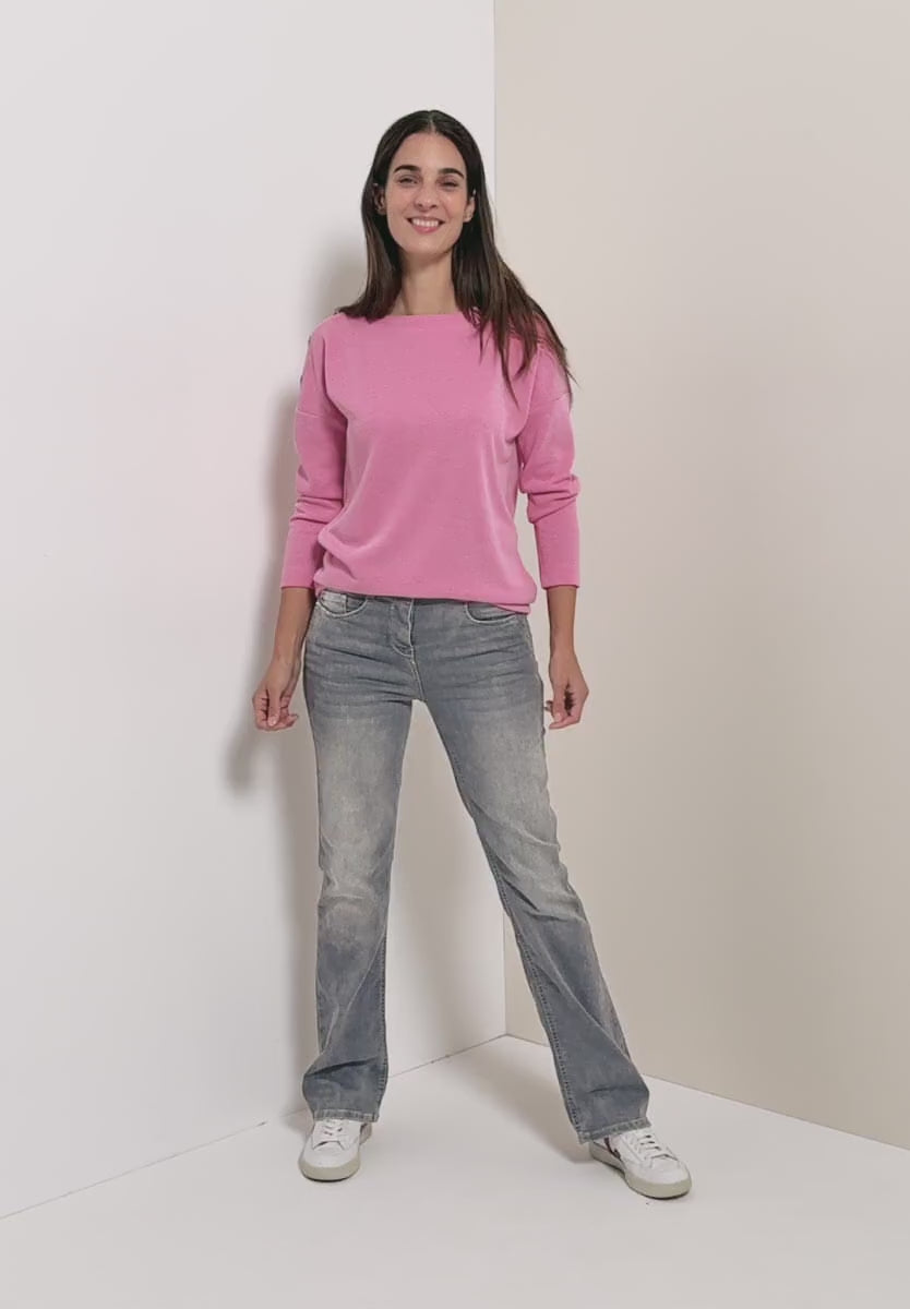 The women’s sweater by CECIL convinces with its feminine submarine neckline and a soft melange look. Button details on the shoulders set stylish accents, while the soft quality ensures a pleasant comfort. An uncomplicated all-rounder with loving details.