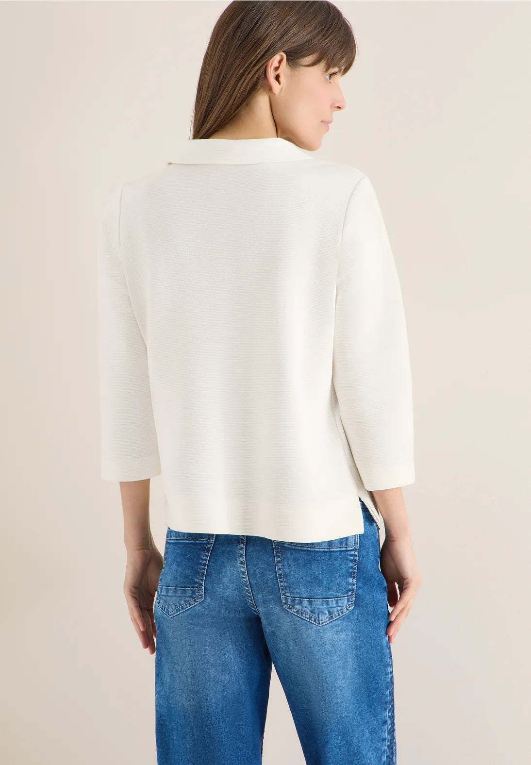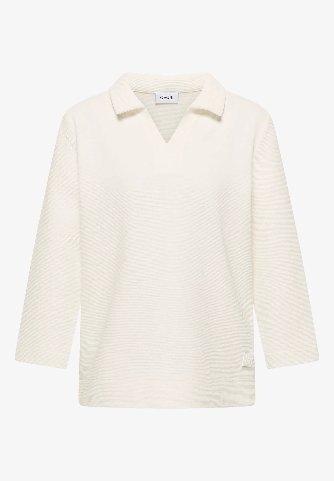The structured polo shirt by CECIL for women convinces with a fine structure and practical 3/4 sleeve - so it is sporty and versatile at the same time. The cotton quality with stretch content ensures comfort and a good fit - wearable over several seasons. Plain colour makes it an uncomplicated partner for everyday life and leisure.