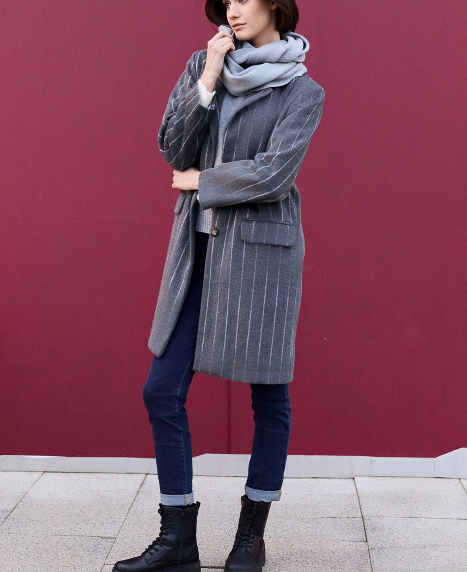 Ladies grey wool mix pinstripe coat from Peruzzi.