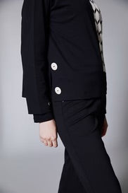 The Peruzzi Hexagonal Jacquard Knit Featuring a striking black and ecru hexagonal jacquard pattern and finished with long cuffed sleeves, this knit offers both comfort and contemporary flair. Ideal for pairing with trousers or skirts, it’s a versatile addition to any wardrobe.