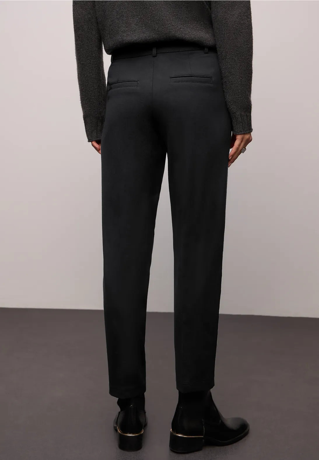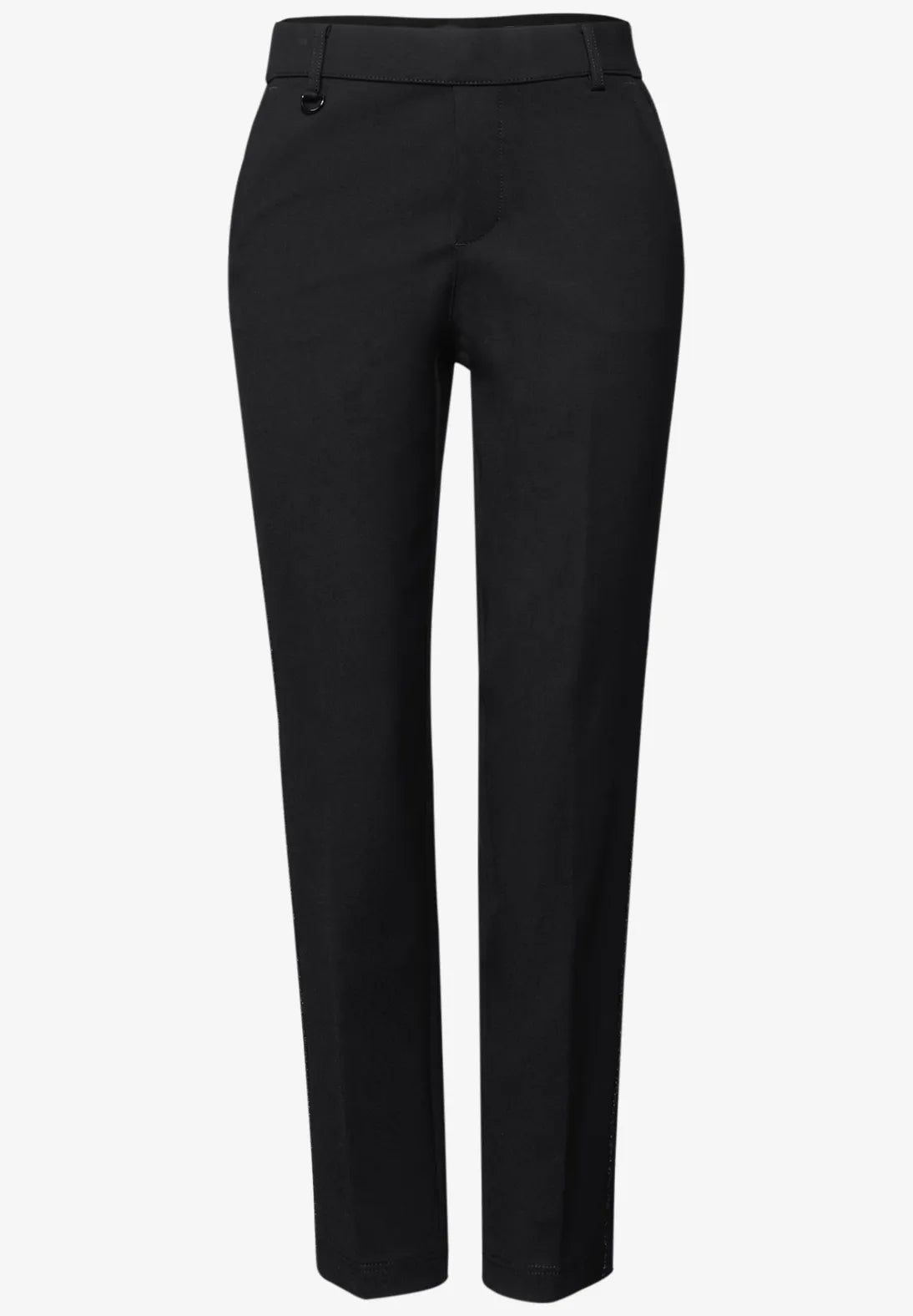 A feminine all-rounder: The Chinese trousers by Street One for women in a casual fit inspire with mid waist, slim legs and shimmering tape details on the sides. Side pockets and the elastic waistband at the back ensure a comfortable fit.