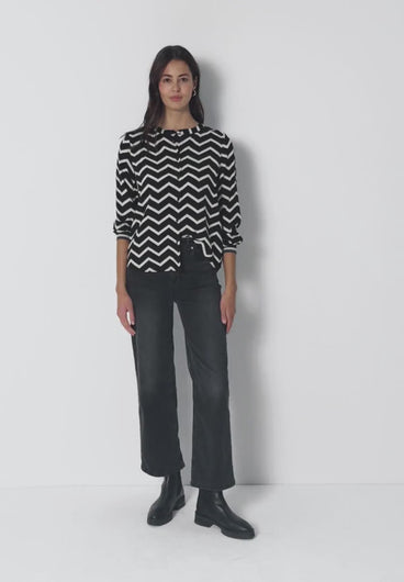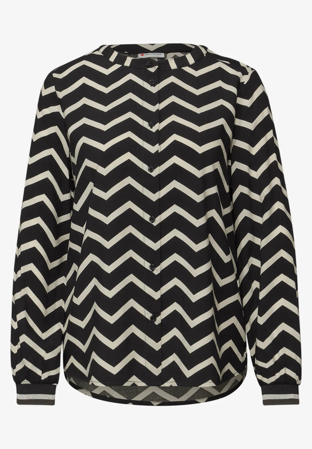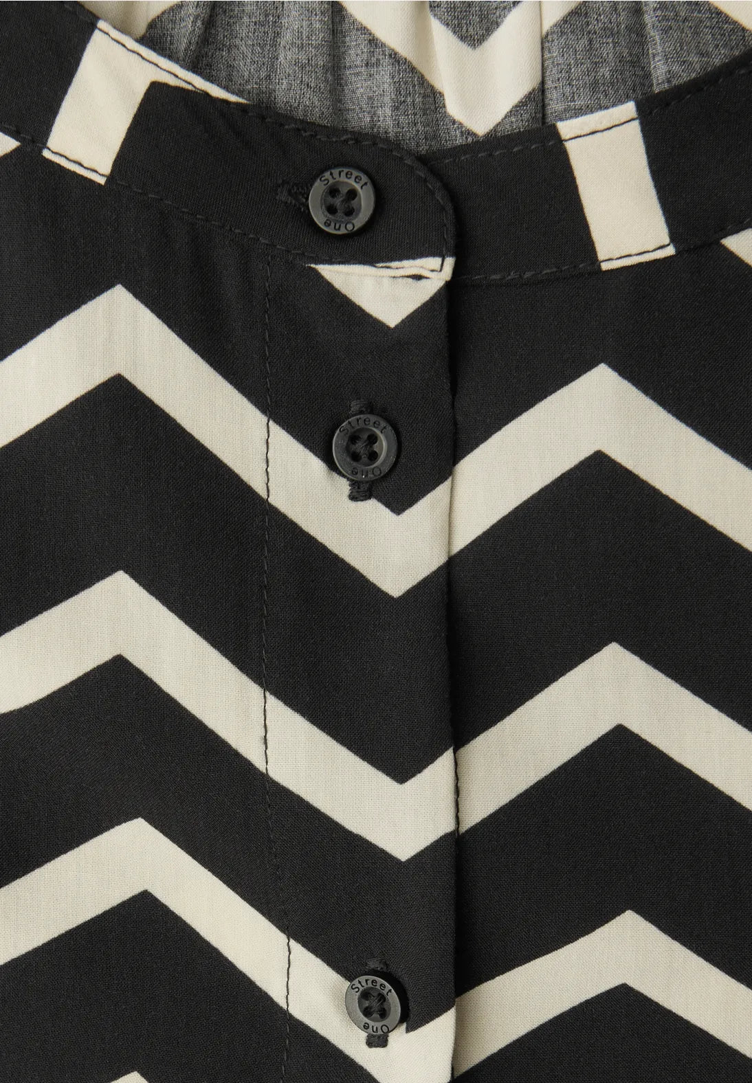 The graphically patterned blouse by Street One for women inspires with soft viscose quality and fashionable tape cuffs. The round neckline rounds off the design and makes it an eye-catcher for stylish casual looks.