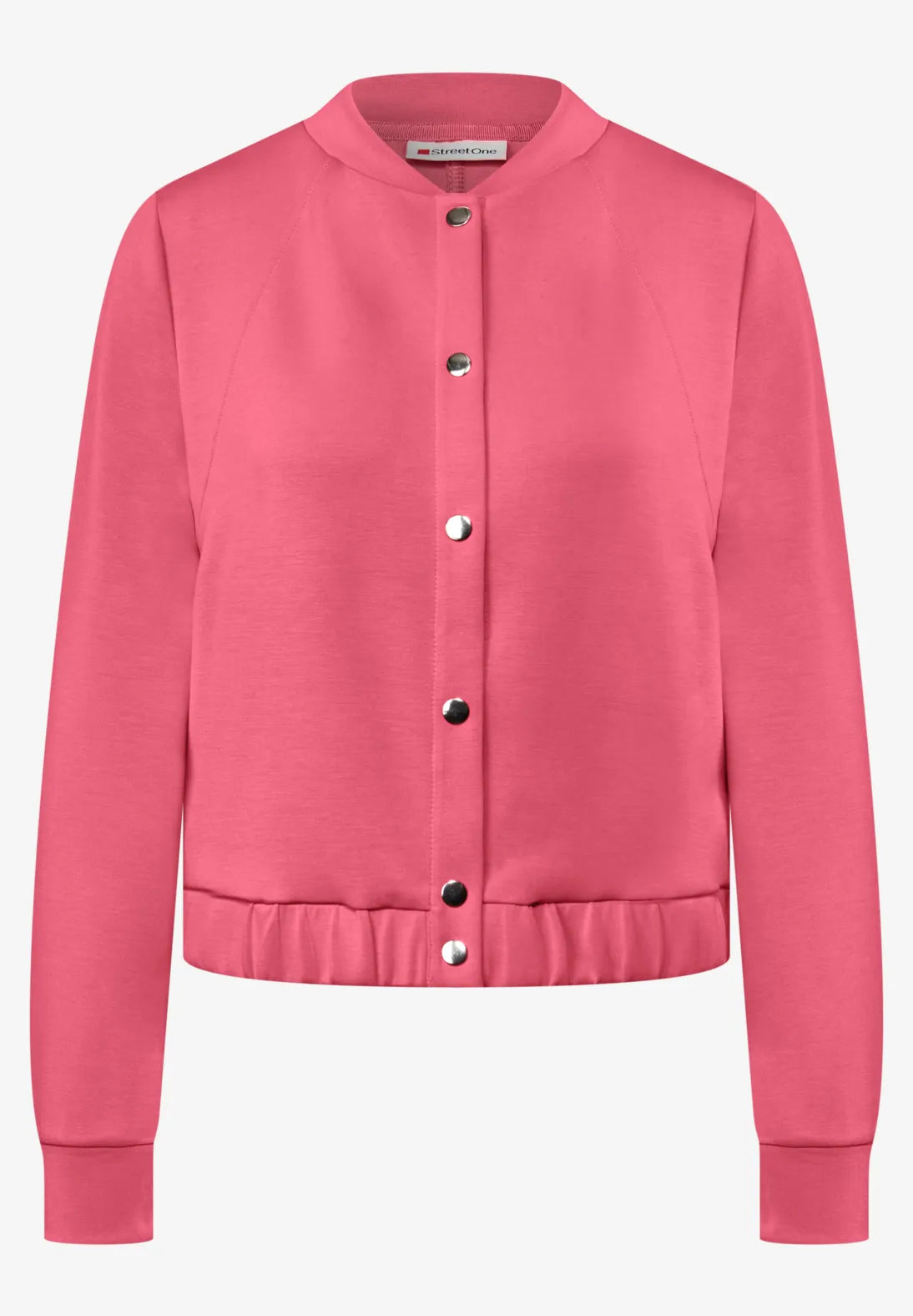 This lightweight women's jacket from Street One combines a silky look with sporty casualness. Matte buttons, a round neck, and an elastic hem give it a modern silhouette, while the side pockets offer practical convenience. Perfect for stylish transitional outfits.