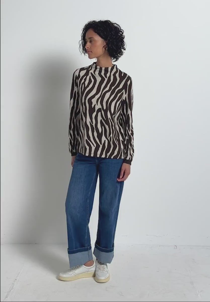 With its expressive zebra print, this shirt from Street One for women will be an eye-catcher in your look. The turtleneck and the soft materials ensure a comfortable wearing comfort and make it ideal for trendy everyday looks.