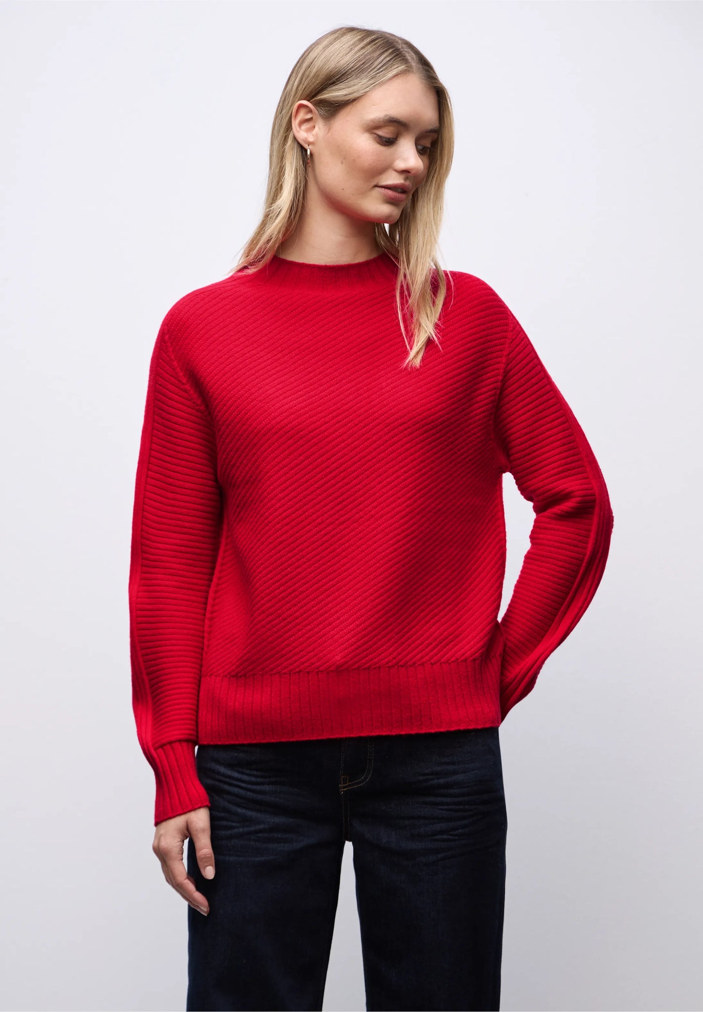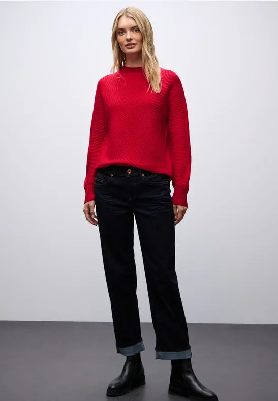 The structured sweater by Street One for women scores with an exciting structure mix and cosy turtleneck. The soft quality ensures maximum comfort - perfect for relaxing autumn and winter days.