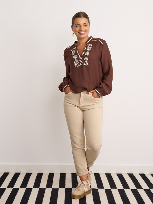 Naya Long Sleeve Top NAW25308 (Brown/Black)