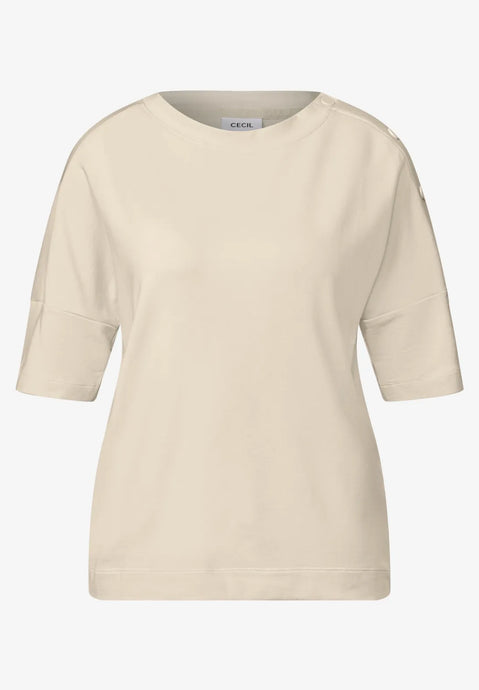 Cecil T-Shirt with Button Detail 323717 Colour- Beige