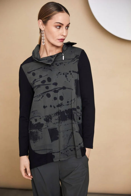 Naya Contrast Sleeve Print Top Black/White NAW24277