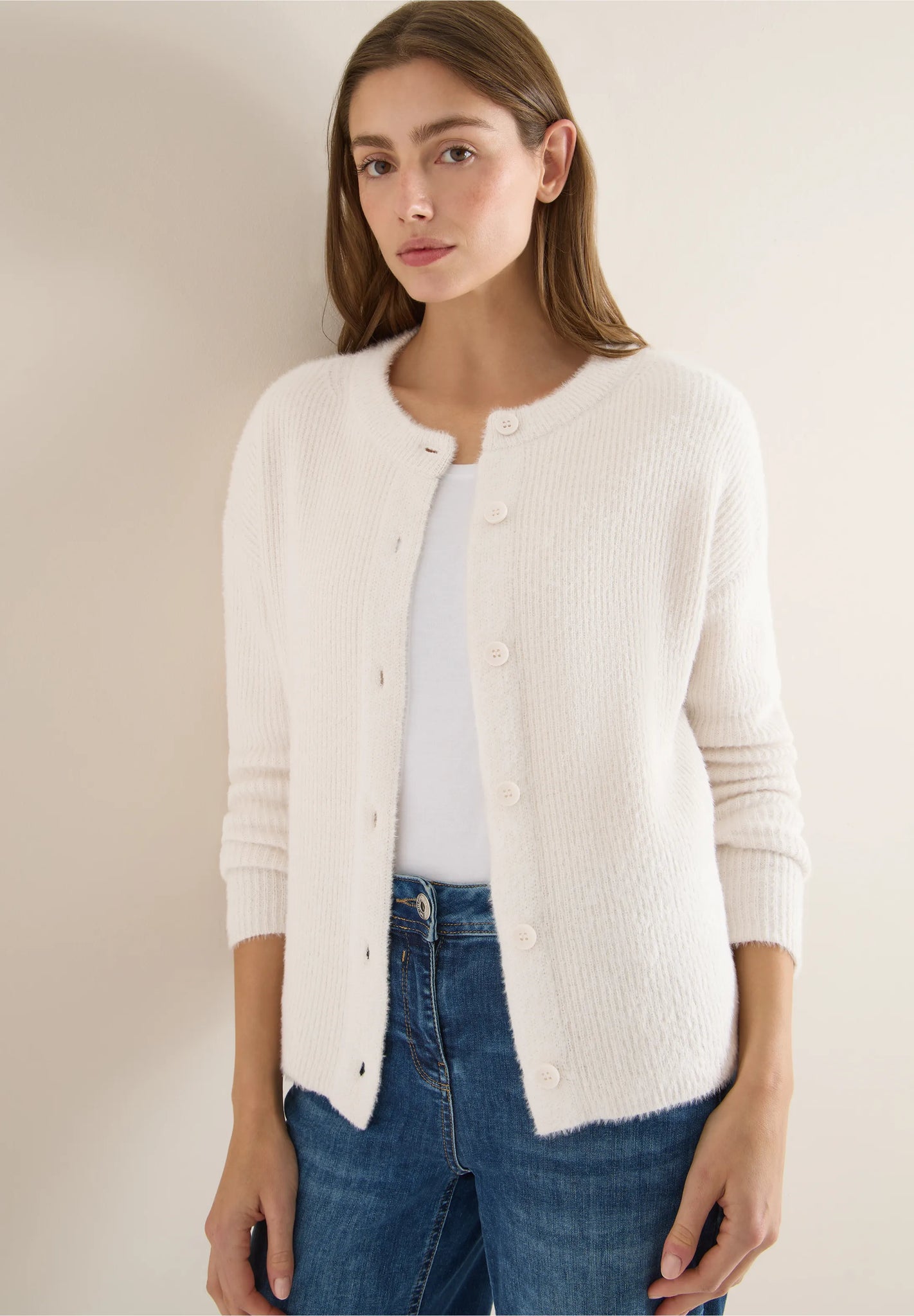 Cecil Light Beige Ribbed Cardigan 254056
