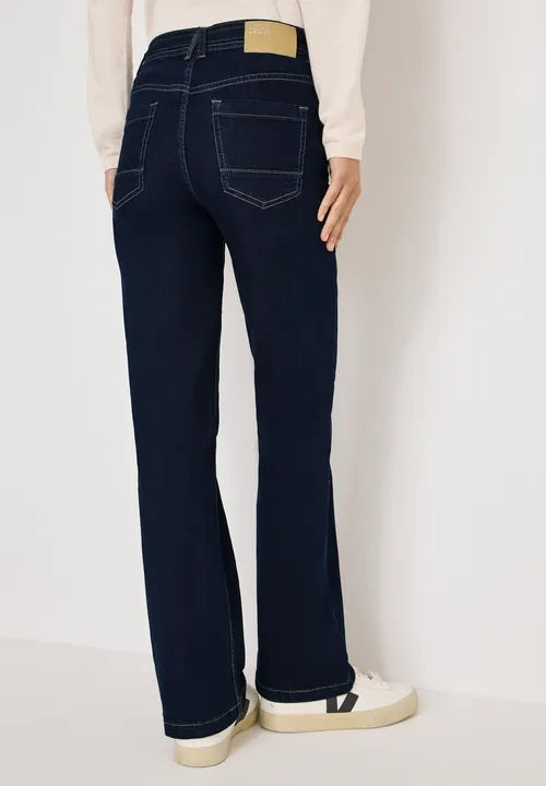 The bootcut jeans in the style Toronto by CECIL for women convince with figure-hugging slim fit, high waist and fashionable flared leg. The rinsed look provides a clean look, while the elastic cotton blend offers a pleasant wearing comfort. Jeans with a feminine silhouette - versatile and timelessly modern.