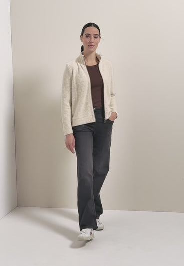 The lightweight jacket by CECIL for women convinces with its soft spring yarn quality and sporty stand-up collar. Zipper and long sleeves make them the perfect companion for the transition period. A cosy look with fashionable knit character.