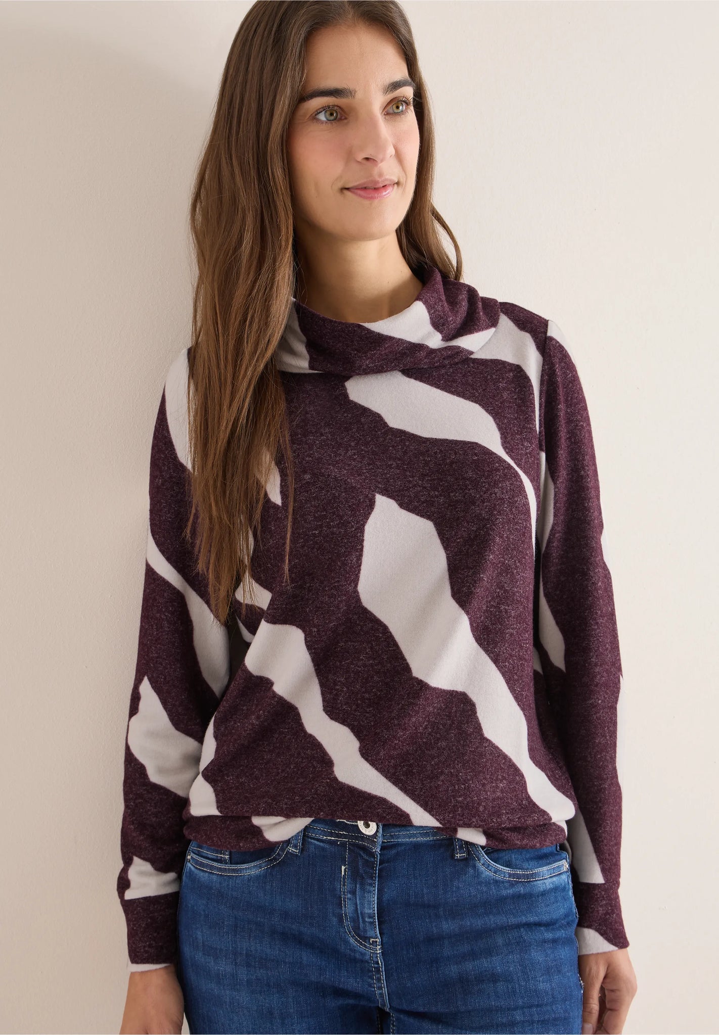 This women's shirt from CECIL impresses with its cozy feel and subtle pattern. The large collar and side slits create a casual silhouette. Soft and comfortable, it's ideal for relaxed looks with style.