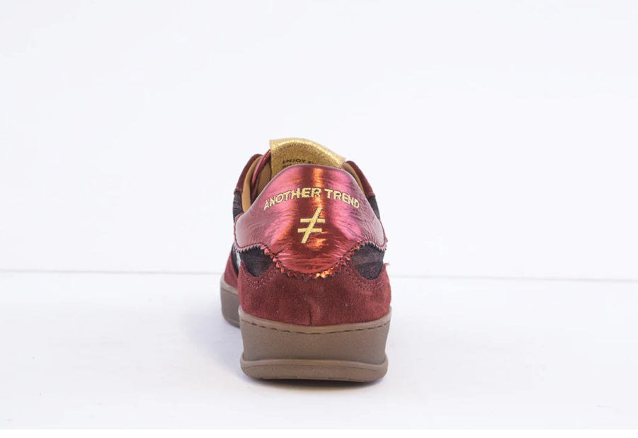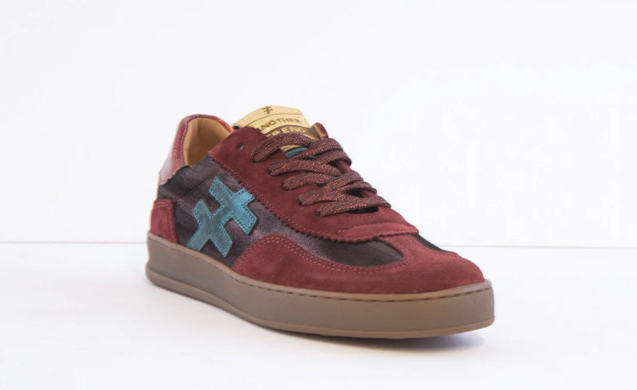 Another Trend ladies laced trainer in Rioja and Turqui with soft leather suede and contrast laces. Also has removable sole.